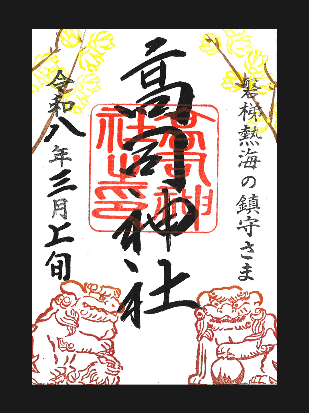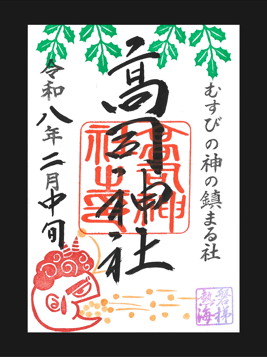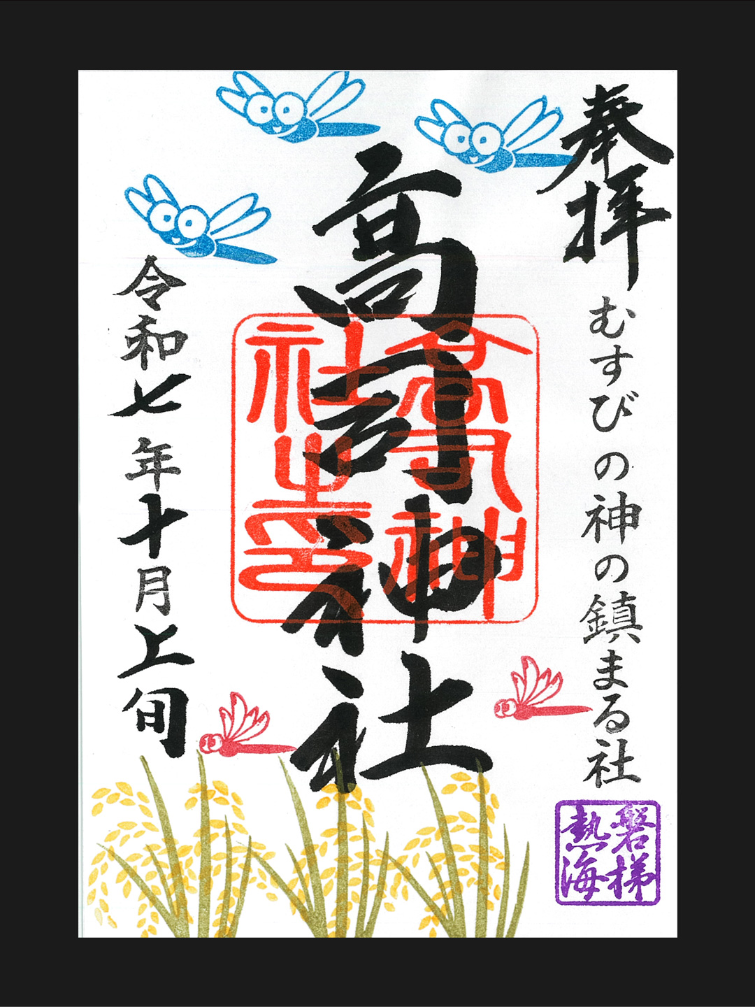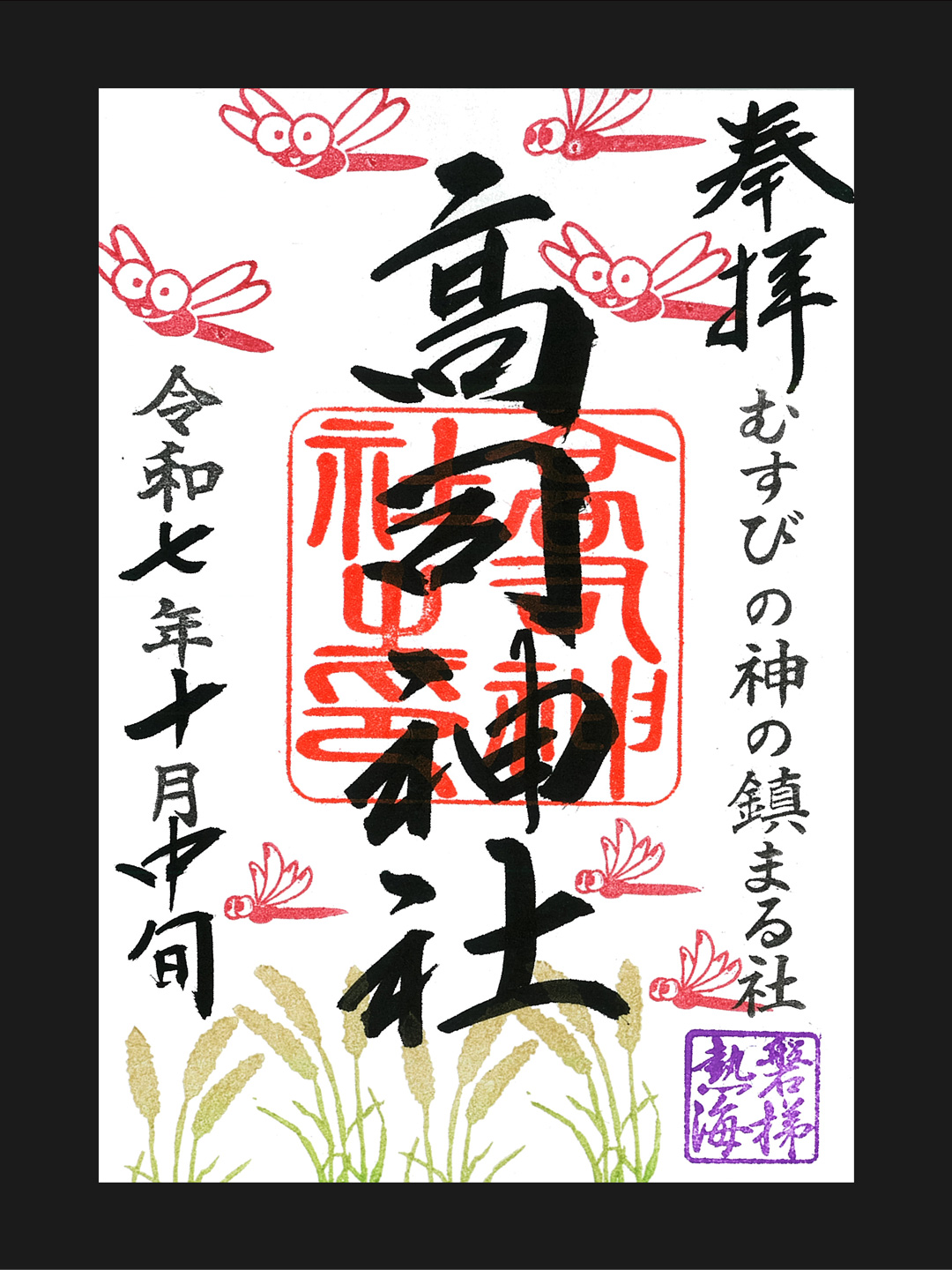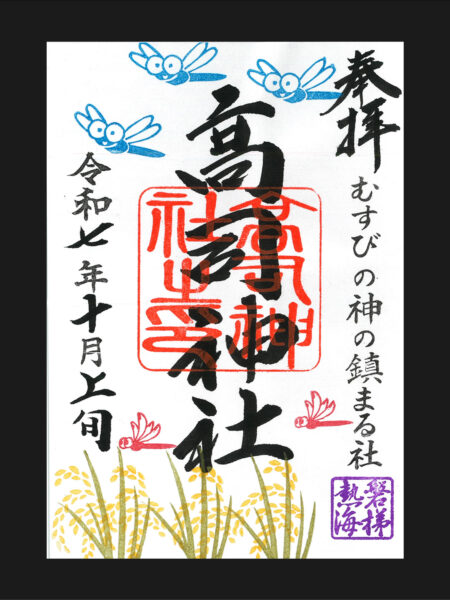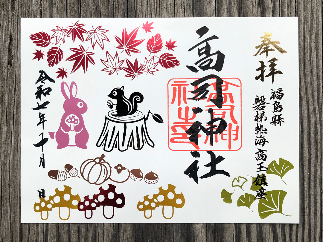 小さな村の鎮守さまですが、ご朱印を通じ「高司神社」の名が拡まることを願い、神職自ら絵柄を奉製しています。