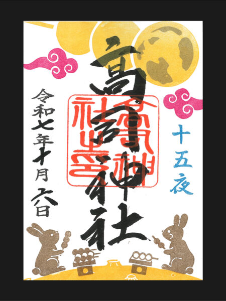 【類い希なるご朱印】 絵柄のデザインから凸版作成、箔押し加工から墨入れまで、神職自らが行う完全自社奉製です。箔をふんだんに乗せご朱印の高級感を一層引き出しています。絵柄は「高司神社の風景」にこだわらず毎月季節の絵柄を用いています。